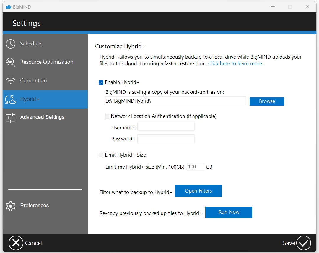 Here’s where BigMIND shines. With encrypted cloud backup stored on Amazon S3 infrastructure, your data is offsite, secure, and instantly recoverable. Cold Storage and Hot Storage options let you choose between long-term archiving and instant file access.
