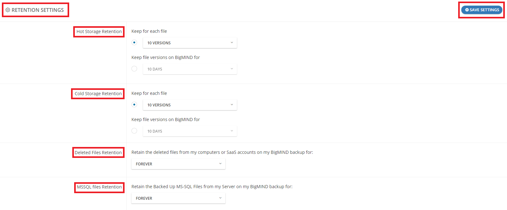 With BigMIND’s incremental backup method, you automatically create multiple versions of your files. And combined with BigMIND’s retention engine, keeping the latest 3 versions of each file is an easy task!